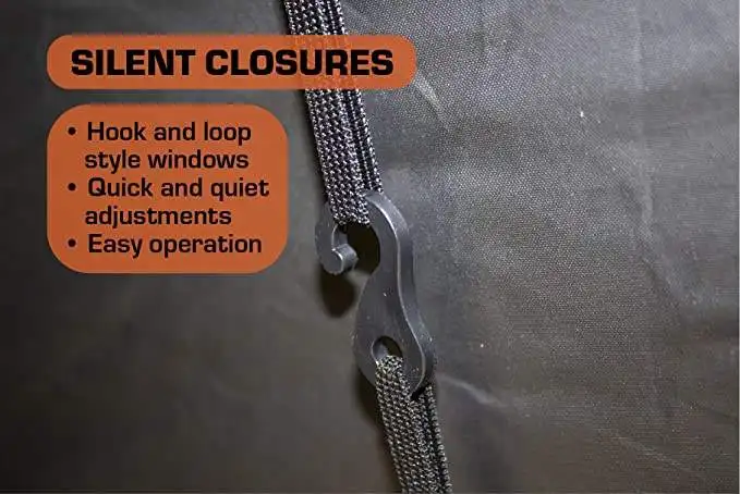 The spacious interior of the tent provides ample room for one person to move around comfortably, with enough space to store your gear and weapons within easy reach. The multiple windows and openings on the tent allow for optimal visibility and ventilation, so you can stay alert and comfortable during long hours spent waiting for your prey.