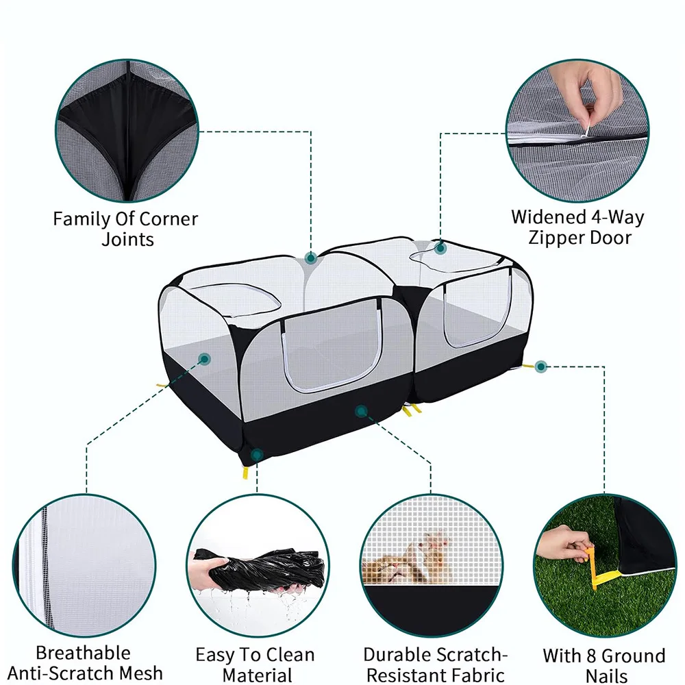 Constructed with high-quality materials, this portable pen is designed to withstand the elements and provide a secure and comfortable space for your pets. Whether you have chickens, rabbits, cats, dogs, ducks, or any other small animals, this pen is the perfect solution for keeping them safe and secure while outdoors.