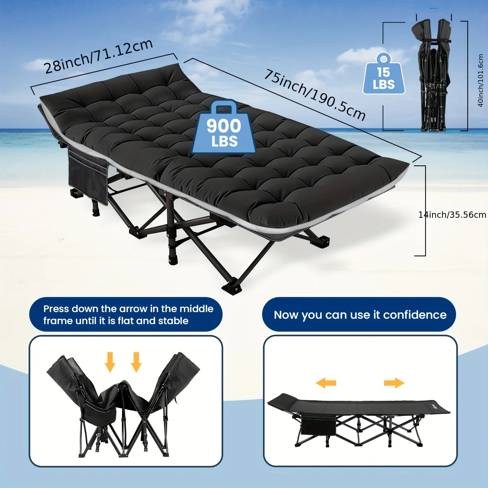 Whether you're camping in the woods, lounging by the beach, or attending a music festival, this foldable bed is the perfect solution for a good night's sleep. Its compact and lightweight design makes it ideal for backpacking and hiking trips. You can easily pack it in your car, RV, or suitcase without taking up too much space.
