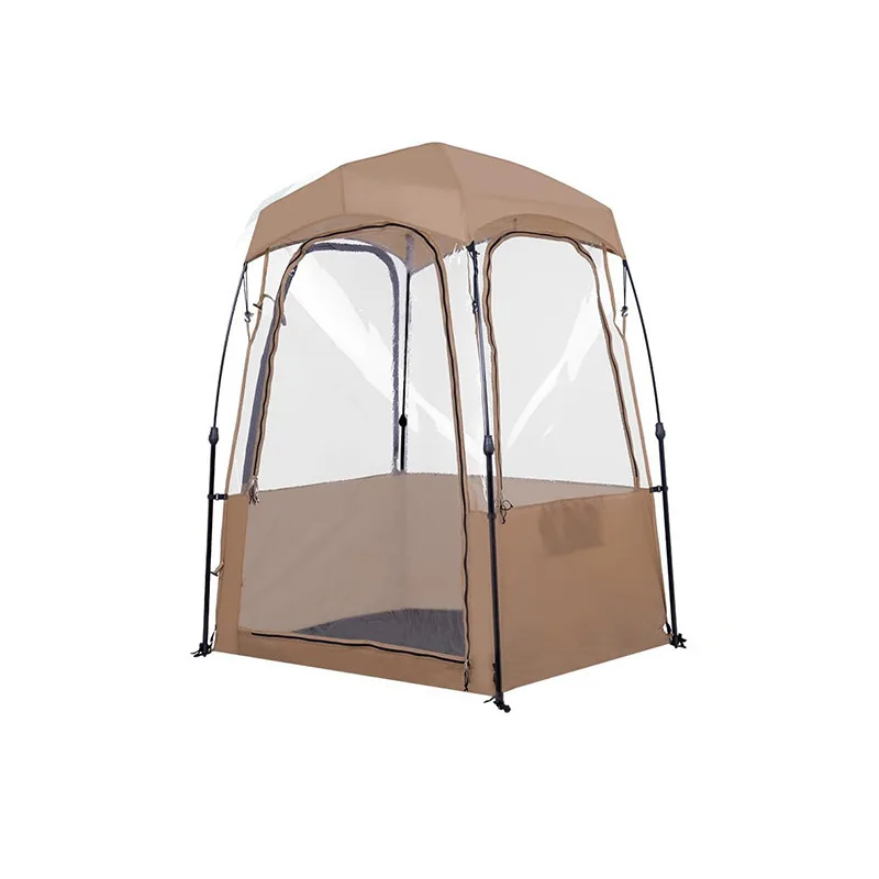 The clear walls let in light and keep your view open. You do not have to move or lean to see — the see-through shell keeps your view free and wide. The tent is waterproof, so light rain will not stop your day. A strong, water-ready fabric keeps puddles and damp grass from getting in, while zip-close seams help lock out wind and spray. Rain or shine, you stay comfortable.