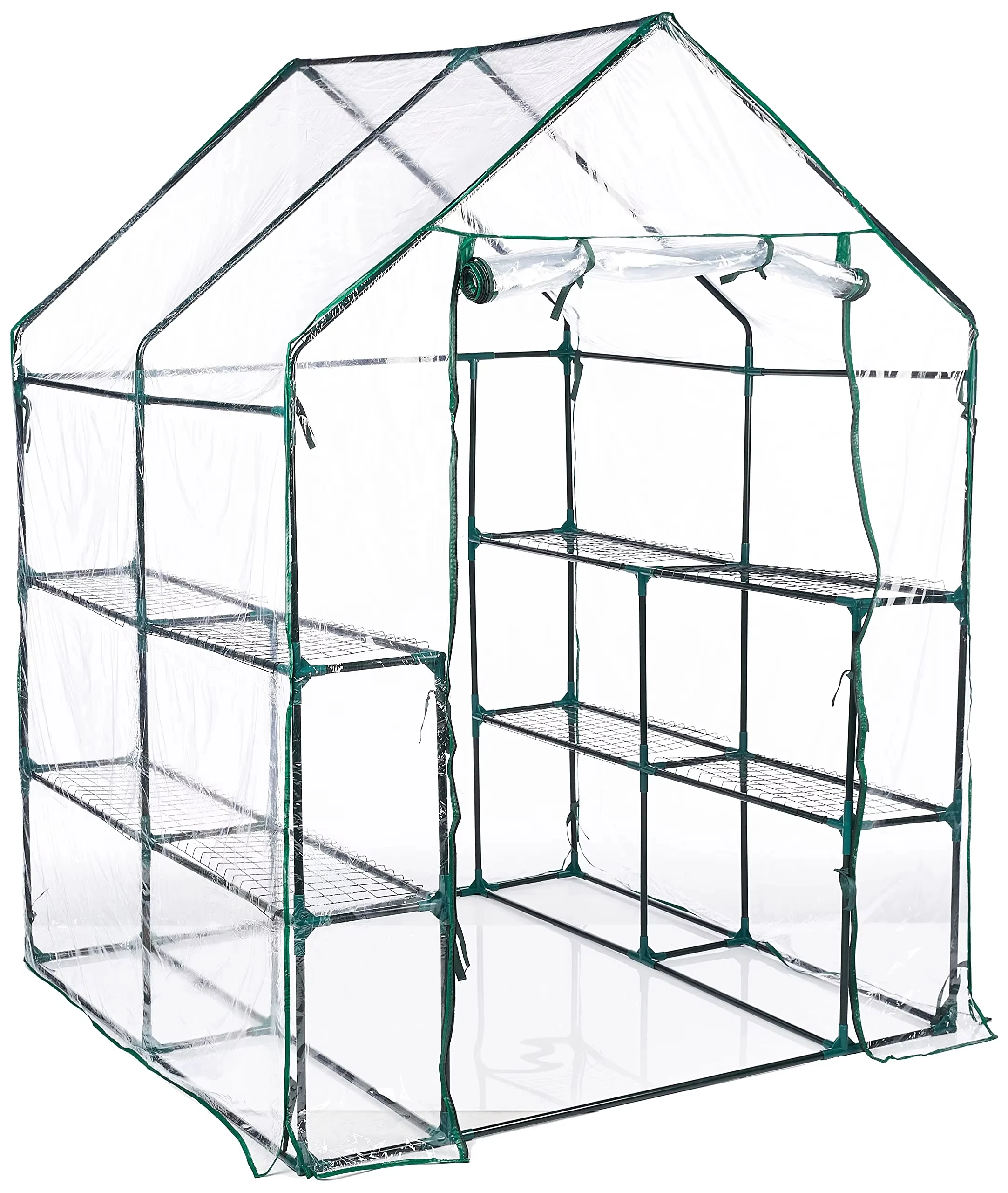 This garden house is ideal for both indoor and outdoor use, so you can keep it on your porch, patio, deck, or in your sunroom. Its clear PVC cover with a roll-up door helps create an ideal growing environment, protecting seedlings and sensitive plants from frost or cold snaps, strong winds, and other elements